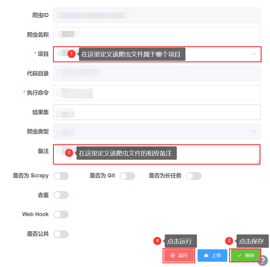 - 项目:爬虫所属的项目,没有所属项目可以留空