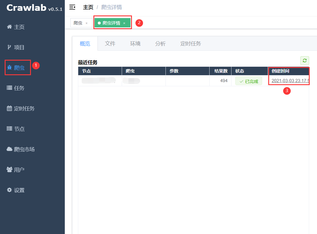 - 在【爬虫详情页】点击【创建时间】,进入【任务详情页】
