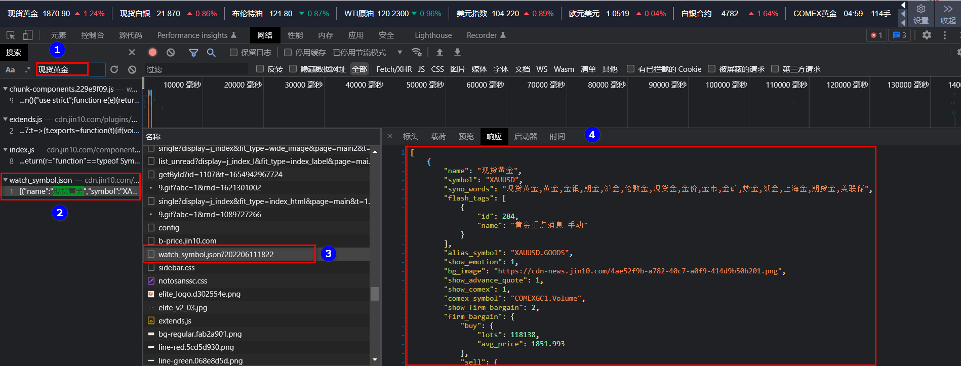 - 点击搜索图标,输入搜索关键词现货黄金,按回车进行搜索