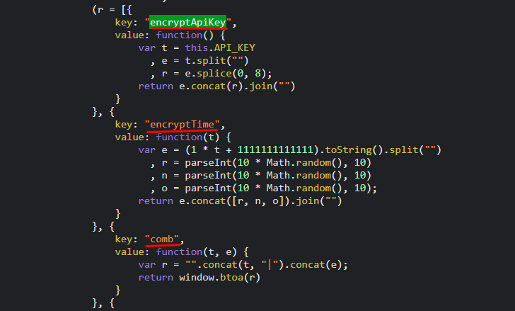 {}格式化源代码,然后点击快捷键Ctrl + F并输入加密参数x-apiKey进行搜索 - 搜索后发现主体函数