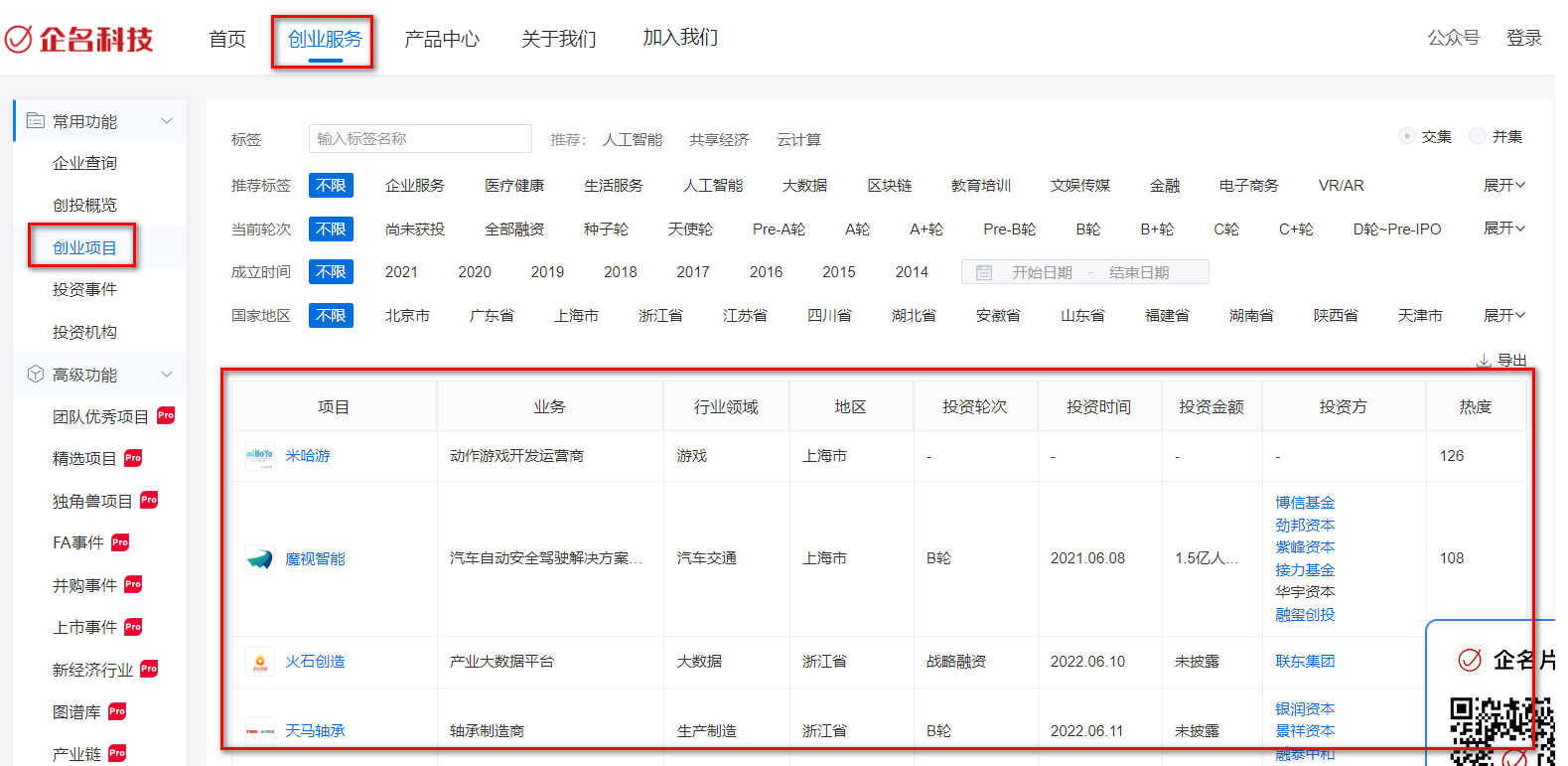 {'list': [{'product': 'Motphys', 'icon': 'https://img1.qimingpian.cn/uploadImg/202108/6119c9fe5c078.png', 'hangye1': '游戏', 'yewu': '动作物理引擎技术研发商', 'province': '北京市', 'lunci': '天使轮', 'jieduan': '天使轮', 'money': '数百万美元', 'time': '2021.08.16', 'detail': 'http://vip.qimingpian.cn/#/detailcom?src=magic&ticket=09a6b23085f65ddf8d7230694affa84a&id=4d585741249ff215dfd21f04fdb2faf2', 'investor_info': [{'investor': '红杉中国', 'detail': 'http://vip.qimingpian.cn/#/detailorg?src=magic&ticket=4b1c54ebfbdd53d6a0af12a37b98d5d4&id=a8d12f114305bd75e39f9e3abec13c6b', 'invest_type_name': '领投', 'invest_type': '1'}, {'investor': '高瓴创投', 'detail': 'http://vip.qimingpian.cn/#/detailorg?src=magic&ticket=af2742b715695f55aa827f8ba4fa580c&id=c2946868a0d82299e956947366e25380', 'invest_type_name': '领投', 'invest_type': '1'}, {'investor': 'Game Trigger', 'detail': 'http://vip.qimingpian.cn/#/detailorg?src=magic&ticket=4f756b811a965073ac1ba61d70f49c2d&id=afd58971b6068c8bf54b8f616c73734b', 'invest_type_name': '跟投', 'invest_type': '2'}], 'heat_num': '564'}, {'product': '米哈游', 'icon': 'https://qmp.oss-cn-beijing.aliyuncs.com/uploadImg/202001/product5e0fb945b8661488498170.png?x-oss-process=style%2Fsmall&OSSAccessKeyId=LTAI2SRf7Sf1P5bU&Expires=1657633086&Signature=auRrYuHPGN9SW%2FBRi0SC%2FDZAGrY%3D', 'hangye1': '游戏', 'yewu': '动作游戏开发运营商', 'province': '上海市', 'lunci': '', 'jieduan': '', 'money': '', 'time': '', 'detail': 'http://vip.qimingpian.cn/#/detailcom?src=magic&ticket=51de3fa1f48b534a89b740e13451dcc0&id=d2a082bf7f52231a0dca9adb03b1e594', 'investor_info': [], 'heat_num': '480'}, {'product': '铁甲钢拳', 'icon': 'https://qmp.oss-cn-beijing.aliyuncs.com/uploadImg/202001/product5e10bd6ee041b092722276.png?x-oss-process=style%2Fsmall&OSSAccessKeyId=LTAI2SRf7Sf1P5bU&Expires=1657633086&Signature=4gcKyPwaBeRy3OegymTvAEbIQ2o%3D', 'hangye1': '医疗健康', 'yewu': '柔性机械外骨骼生产商', 'province': '北京市', 'lunci': '股权融资', 'jieduan': '股权融资', 'money': '未披露', 'time': '2021.01.16', 'detail': 'http://vip.qimingpian.cn/#/detailcom?src=magic&ticket=e3cef59325495e03a252f9a6bfb89d08&id=bb6ad21be8dc40422c70f481ec78ebb2', 'investor_info': [{'investor': '盛大集团', 'detail': 'http://vip.qimingpian.cn/#/detailorg?src=magic&ticket=8a17c30a9d7956f2af21626bd3f5baf4&id=c3978cfc3bacdc8a03fa77e30f55af1b', 'invest_type_name': '独投', 'invest_type': '4'}], 'heat_num': '444'}, {'product': '清醒异构', 'icon': 'https://img1.qimingpian.cn/uploadImg/202109/6140532cc1498.png', 'hangye1': '企业服务', 'yewu': '自动并行程序工厂提供商', 'province': '北京市', 'lunci': '天使+', 'jieduan': '天使+', 'money': '未披露', 'time': '2022.06.07', 'detail': 'http://vip.qimingpian.cn/#/detailcom?src=magic&ticket=67bad6854b4c5ede92d877acd81443cb&id=30ee74f257fc7bddd8d7a03948852f2d', 'investor_info': [{'investor': '卓源资本', 'detail': 'http://vip.qimingpian.cn/#/detailorg?src=magic&ticket=c374788fd4045403a2d1d7cc44033fc4&id=ab872d9d596760b21b413f8c187de330', 'invest_type_name': '合投', 'invest_type': '3'}, {'investor': '奇绩创坛', 'detail': 'http://vip.qimingpian.cn/#/detailorg?src=magic&ticket=ae61f4aa346154bbbccba0f31b1b142c&id=984c838baab05e26e259394ff10d9693', 'invest_type_name': '合投', 'invest_type': '3'}, {'investor': '水木清华校友基金', 'detail': 'http://vip.qimingpian.cn/#/detailorg?src=magic&ticket=a9fd5fb24b4b5c32a7fa21da2093b006&id=4ed78f5bdc6555408947d6214e029cb3', 'invest_type_name': '合投', 'invest_type': '3'}, {'investor': '英诺天使基金', 'detail': 'http://vip.qimingpian.cn/#/detailorg?src=magic&ticket=66adef69e9da56ccac938e016c249157&id=0279cb3ff5cedbd5a210f0c8c0049000', 'invest_type_name': '合投', 'invest_type': '3'}], 'heat_num': '354'}, {'product': '华翊量子', 'icon': 'https://img1.qimingpian.cn/uploadImg/202204/62620722e5d97.png', 'hangye1': '科研及技术服务', 'yewu': '量子计算机研发商', 'province': '北京市', 'lunci': '天使轮', 'jieduan': '天使轮', 'money': '过亿人民币', 'time': '2022.04.22', 'detail': 'http://vip.qimingpian.cn/#/detailcom?src=magic&ticket=97a518dc77755e9bb3d4c4e5a0247f16&id=d7fb1b033577535ac13bf4ef57e46a14', 'investor_info': [{'investor': '高榕资本', 'detail': 'http://vip.qimingpian.cn/#/detailorg?src=magic&ticket=fae58c4fcd0d5364b162c065438f2d90&id=49ddcd29e21427ad60e7401a70214622', 'invest_type_name': '领投', 'invest_type': '1'}, {'investor': '奥锐特药业', 'detail': 'http://vip.qimingpian.cn/#/detailcom?src=magic&ticket=aaf72e997529585d8eb94bd7ee80a29e&id=b8f1ebf2c20f39c0e282aacbfdc8cb80', 'invest_type_name': '', 'invest_type': '0'}, {'investor': '红杉中国', 'detail': 'http://vip.qimingpian.cn/#/detailorg?src=magic&ticket=4b1c54ebfbdd53d6a0af12a37b98d5d4&id=a8d12f114305bd75e39f9e3abec13c6b', 'invest_type_name': '跟投', 'invest_type': '2'}, {'investor': '奇绩创坛', 'detail': 'http://vip.qimingpian.cn/#/detailorg?src=magic&ticket=ae61f4aa346154bbbccba0f31b1b142c&id=984c838baab05e26e259394ff10d9693', 'invest_type_name': '跟投', 'invest_type': '2'}, {'investor': '图灵创投', 'detail': 'http://vip.qimingpian.cn/#/detailorg?src=magic&ticket=c501563786535160b2e5884ead7c6abb&id=9dd2b265133a63c2ca62c6bfe135074a', 'invest_type_name': '跟投', 'invest_type': '2'}, {'investor': '清华控股', 'detail': 'http://vip.qimingpian.cn/#/detailorg?src=magic&ticket=d7b506a29a7453ac851d28bedd8e93d0&id=926ac5d1ddd8b07ffc96831fe33d5a35', 'invest_type_name': '', 'invest_type': '0'}], 'heat_num': '312'}, {'product': '有了Gotin', 'icon': 'https://img1.qimingpian.cn/uploadImg/202202/6200813c21cc9.png', 'hangye1': '企业服务', 'yewu': '一站式在线活动平台', 'province': '北京市', 'lunci': 'Pre-A轮', 'jieduan': 'Pre-A轮', 'money': '未披露', 'time': '2022.02.07', 'detail': 'http://vip.qimingpian.cn/#/detailcom?src=magic&ticket=b5cb6163367255f390768cb9864c2c44&id=c7bbcb6149