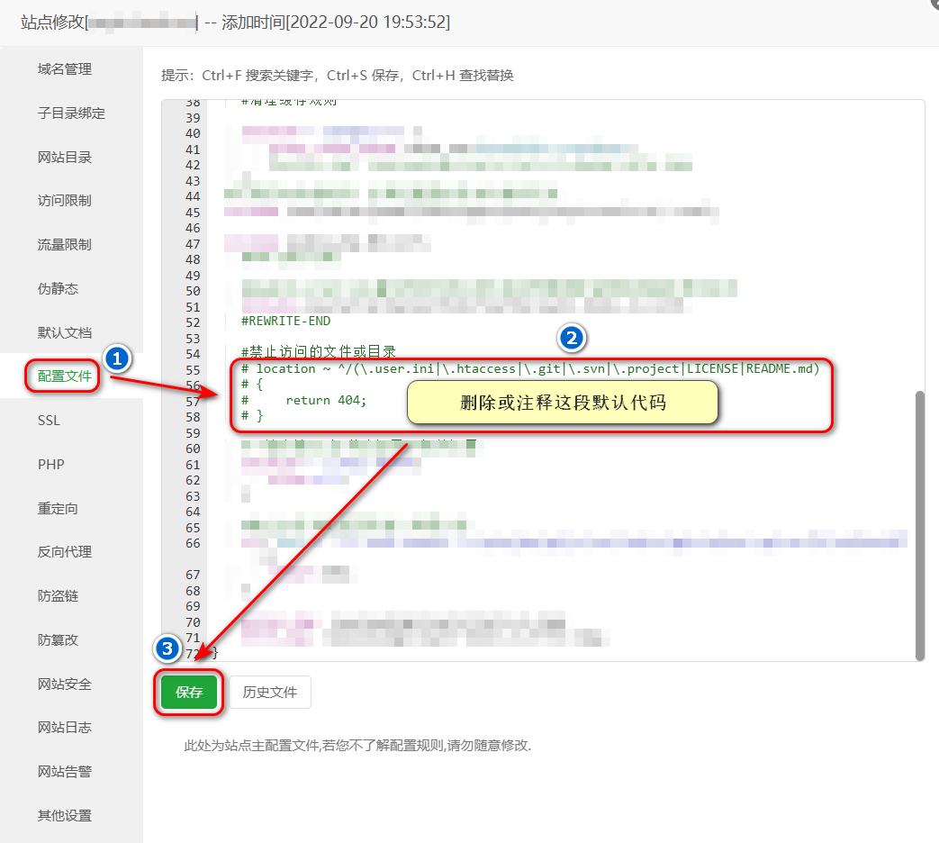 3- location ~ ^/(\.user.ini|\.htaccess|\.git|\.svn|\.project|LICENSE|README.md